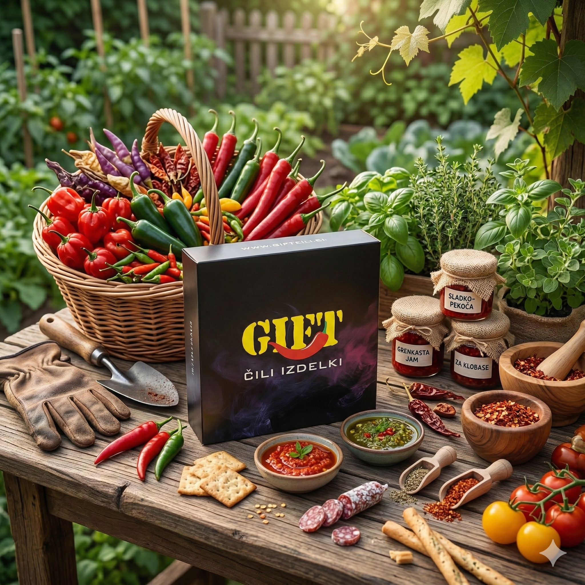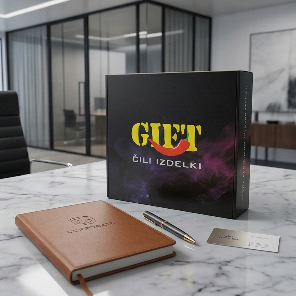 Razkošno darilno doživetje za vse ljubitelje vrhunskih okusov. Darilna embalaža je zasnovana kot prestižna kombinacija notranjega eko kartona, ki varno objame tri izbrane čili omake, ter zunanjega ovitka, oblikovanega z elegantnim potiskom našega logotipa in slogana. Vsak detajl embalaže je premišljeno zasnovan, da poudari pristnost, kvaliteto in osebno noto vašega darila.